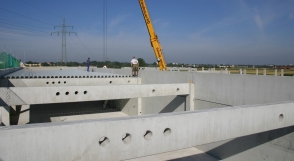 ![]() Stand 10.08.2004 Aufstellung der Fertigteile von Bauteil 1+2 |